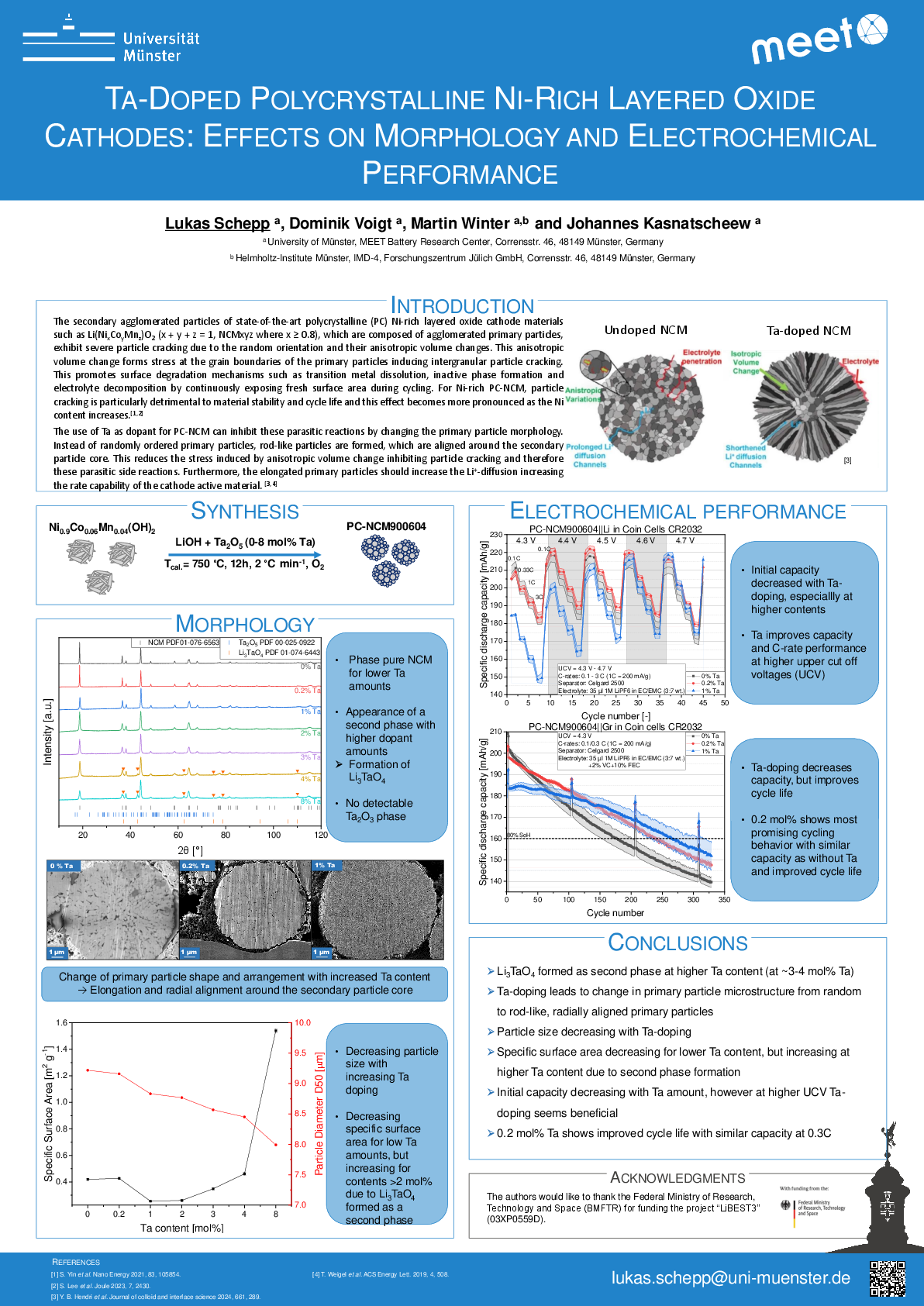 Ta-Doped Polycrystalline Ni-rich Layered Oxide Cathodes: Effects on Morphology and Electrochemical Performance